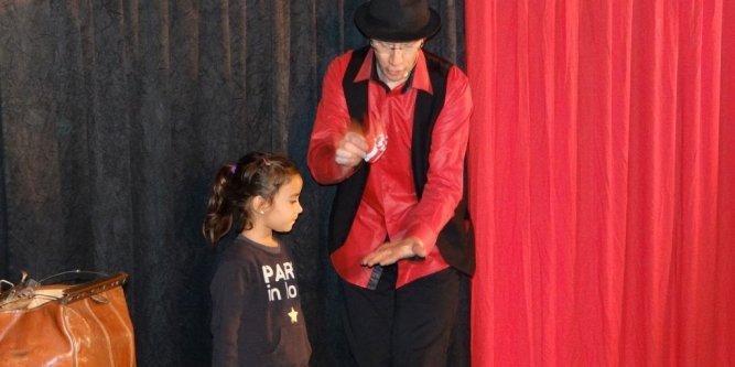 Au cours de ce spectacle ludique et interactif, le magicien a rivalisé d'adresse devant les jeunes spectateurs ébahis.